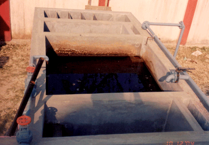 Raw Effluent from entire factory will flow by gravity to Anaerobic Digestor through a Bar Screen Chamber. In this chamber bigger size solid particles (>10 mm particle size) as well as leaves, twigs etc. will be separated. Then the whole waste is passed through the Anaerobic Digestor where Effective Micro-organism (EM) will be dosed on a fixed dosing pattern. The Anaerobic unit will then be filled with millions of small granules or particles of sludge consisting of bacterial strains of EM. These sludge particles are held in a blanket and provide a large surface area on which organic matter are attached and undergo bio-digestion or biodegradation. A high solid retention time (SRT) occurs within the tank. The total treatment process and the operation involve no usage of mechanical equipment, less manpower requirement and ease of operation. The bacterial strains of EM will form a sludge blanket at the bottom of the tank within 20–25 days time after which the load on the tanks will come down substantially. For proper growth & maintenance of micro-organisms special bacteria (EM) culture will be dosed periodically.